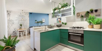 עם עמדת קפה ותה, מתקן מים, מכונת אספרסו, טוסטר, מקרר, כיריים ותנור אפיה -